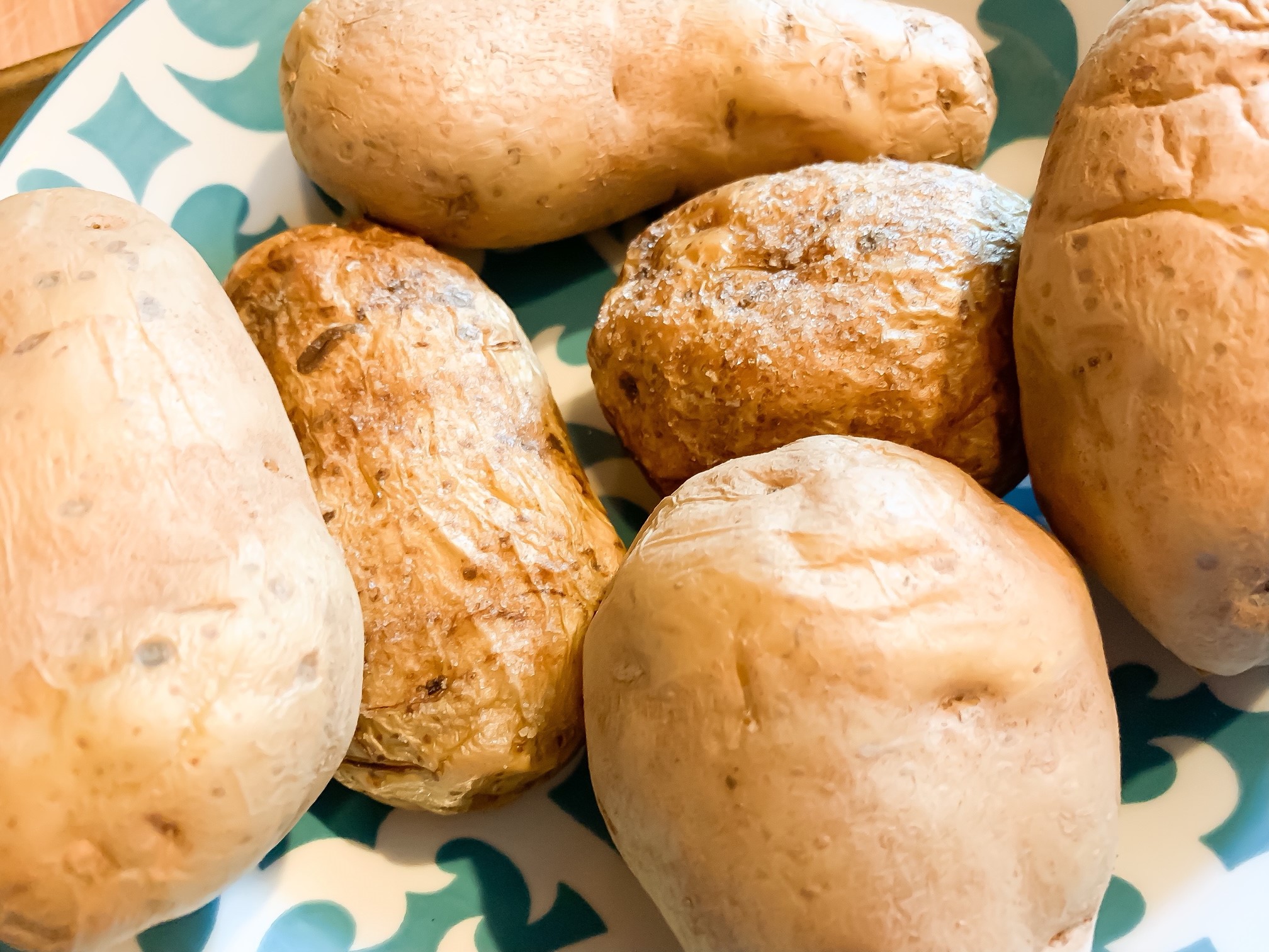 About 8 medium/average sized russet potatoes (leftover from the night before work great)